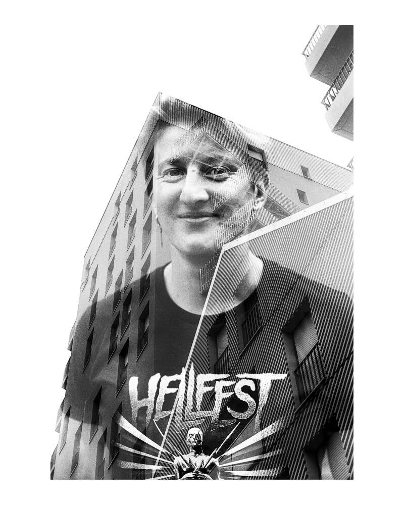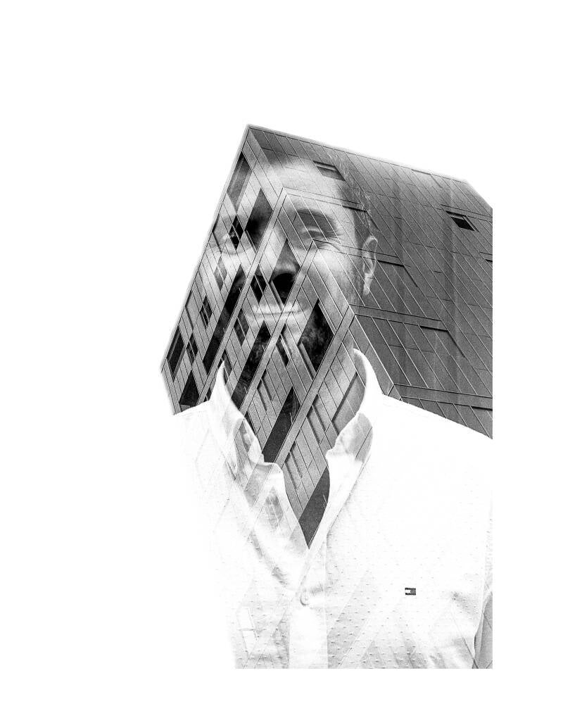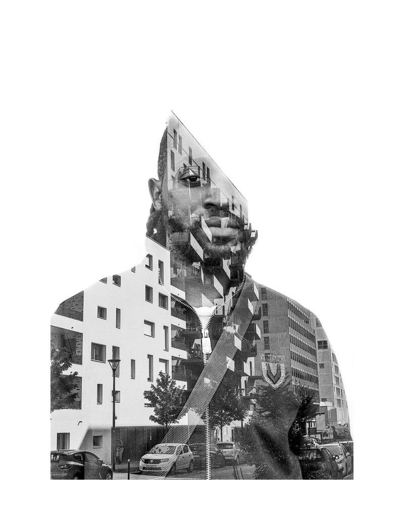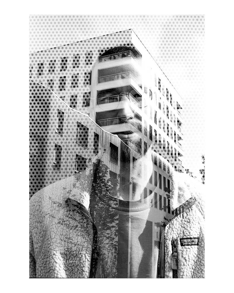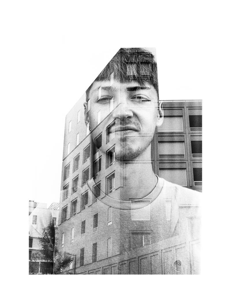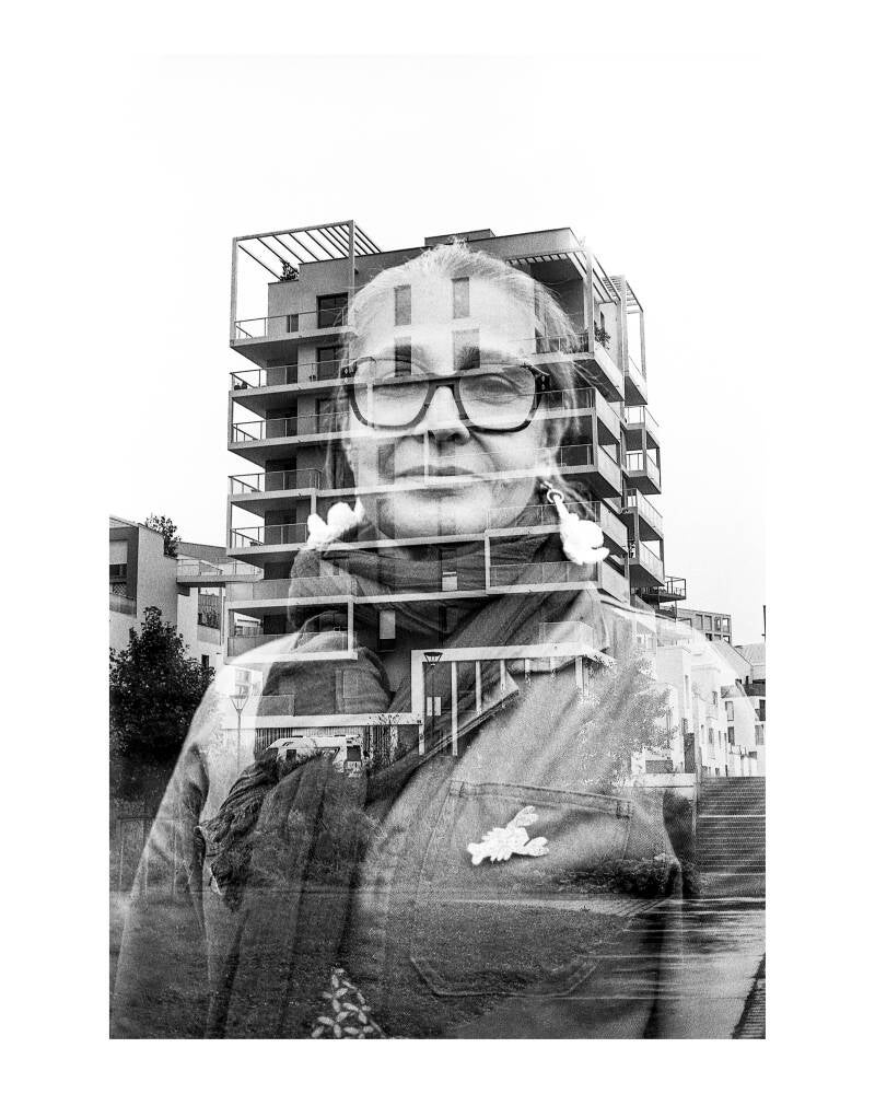 En allant à la rencontre des passants à travers les ilots et en réalisant des doubles expositions à l'aide d'un appareil photo argentique, le photographe a saisi les visages en les imprimant dans l'architecture des lieux le temps d'un instant fugace.
