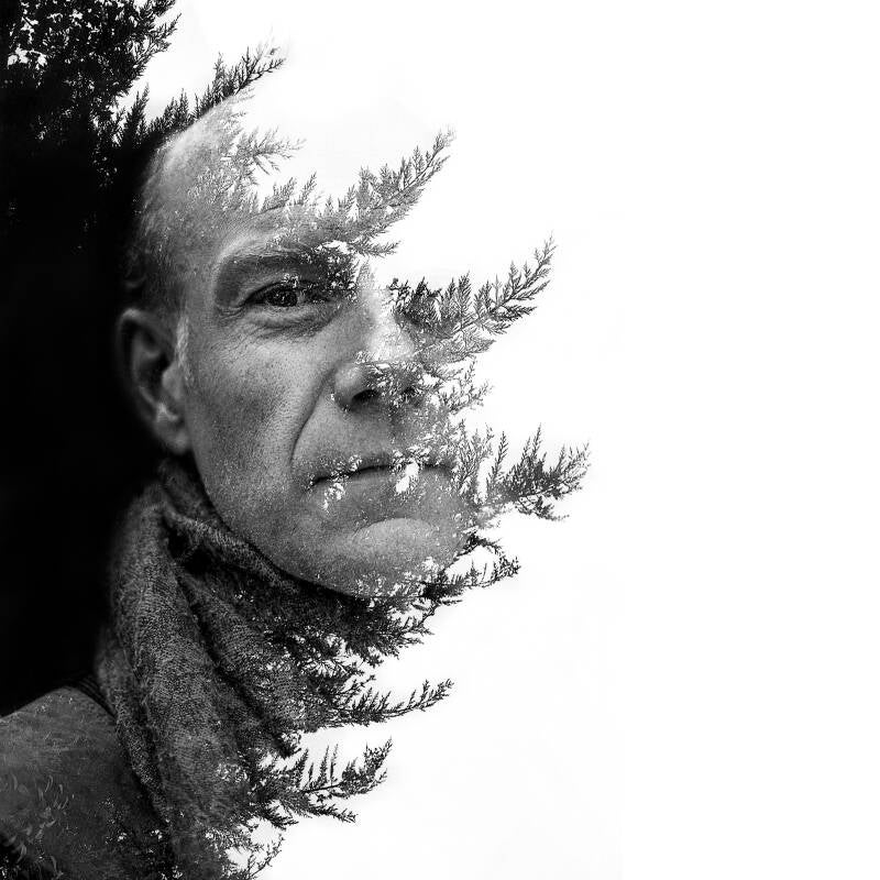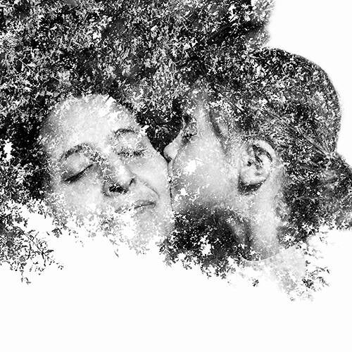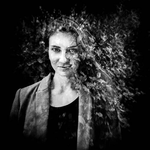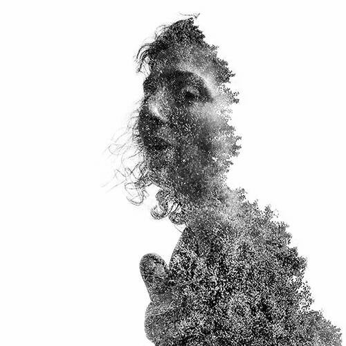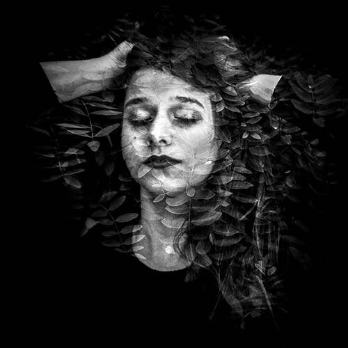Dans cette série de doubles expositions, réalisée en argentique à la prise de vue, les visages se mêlent à la végétation créant ainsi des personnages hybrides, oniriques, empreints de poésie et de mystère.