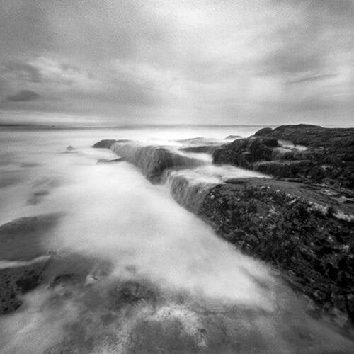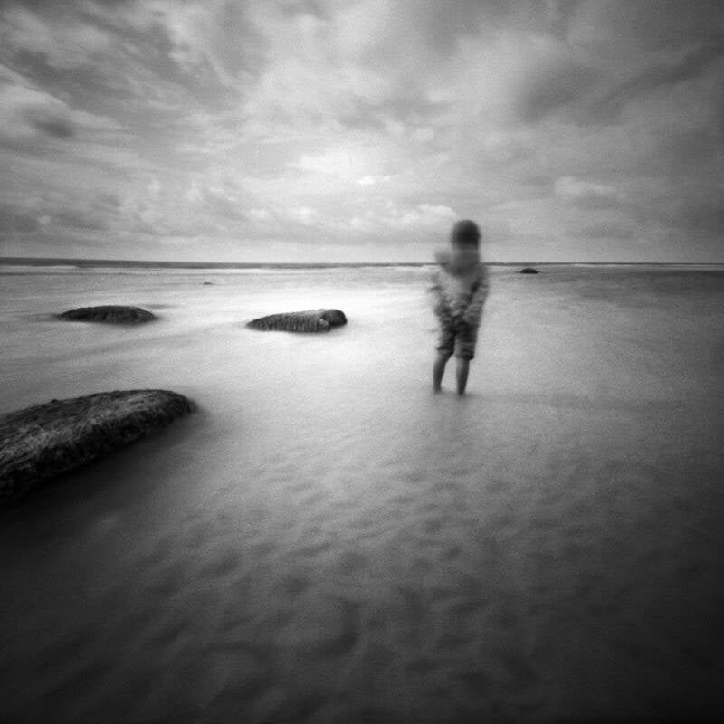 Ces images mélancoliques réalisées en pause longue au sténopé, procédé rudimentaire et ancien, nous plonge à l’exact inverse, aux racines de la photographie. Elles racontent de petit contes poétiques ou le spectateur peut se perdre en contemplation.